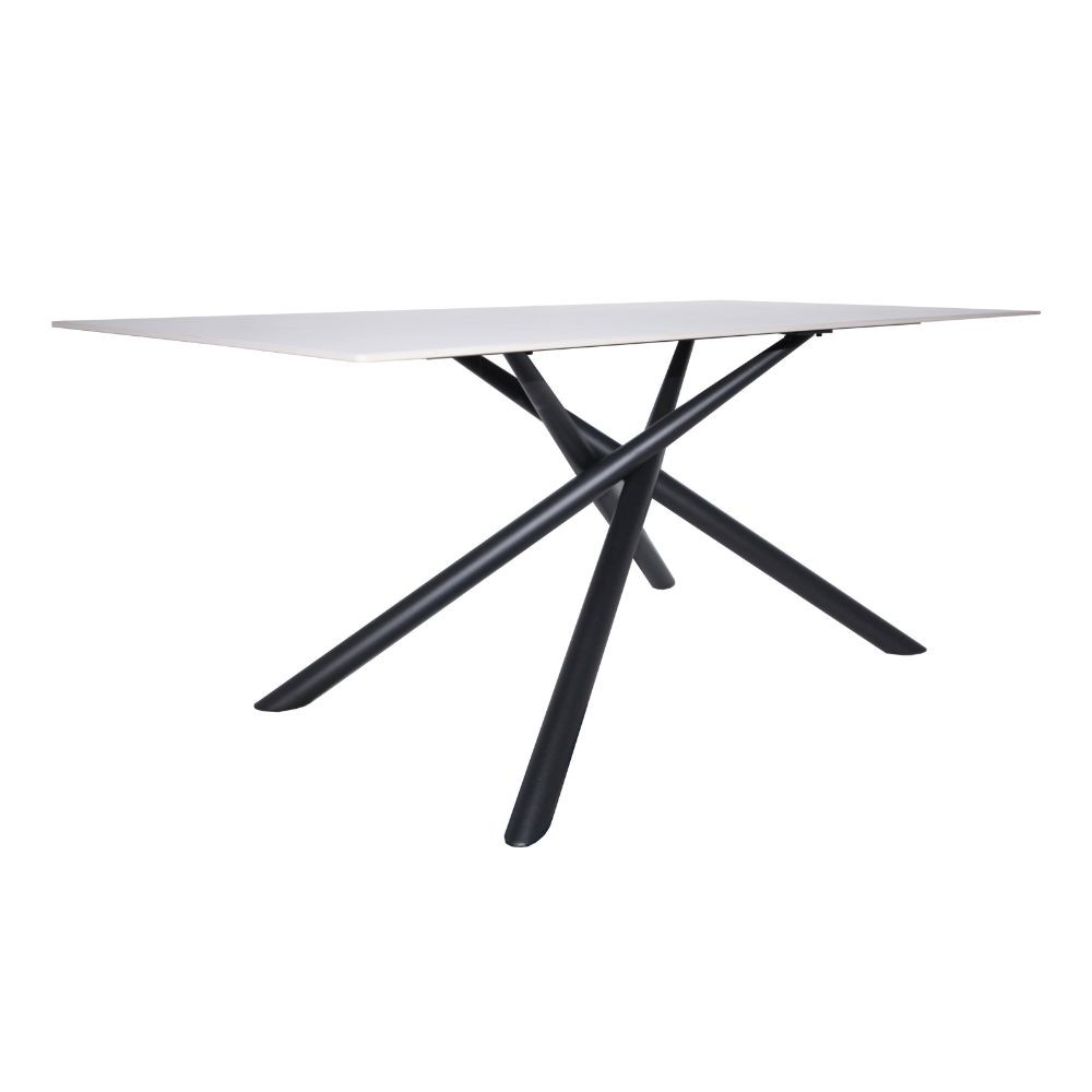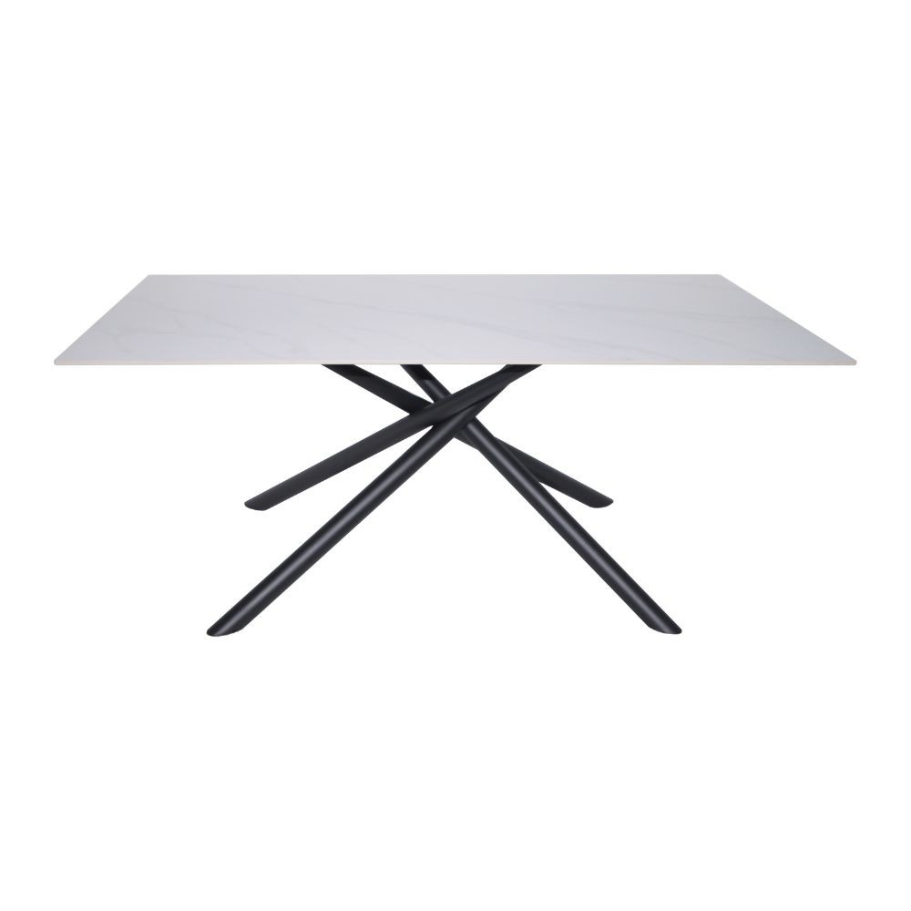 Tavolo fisso Corveo con piano effetto marmo bianco e struttura in metallo nero