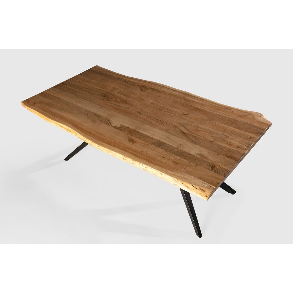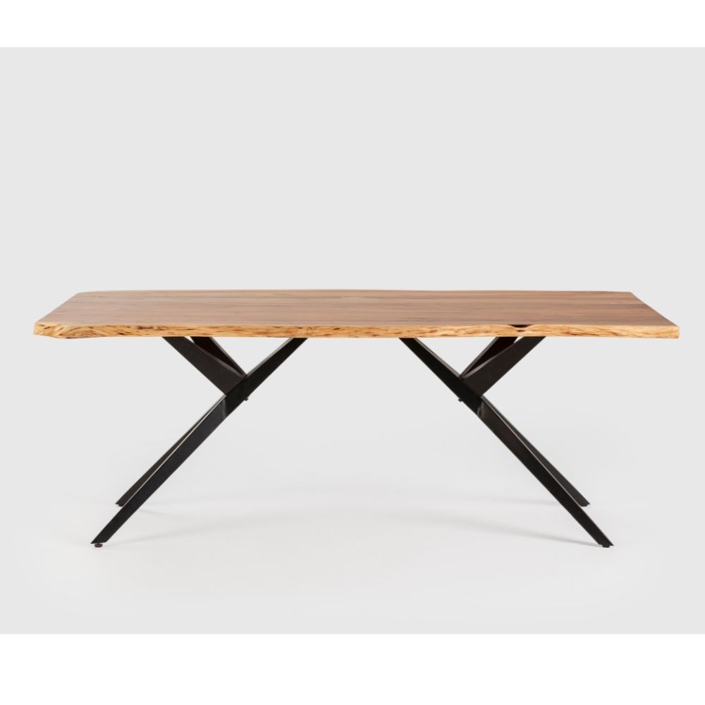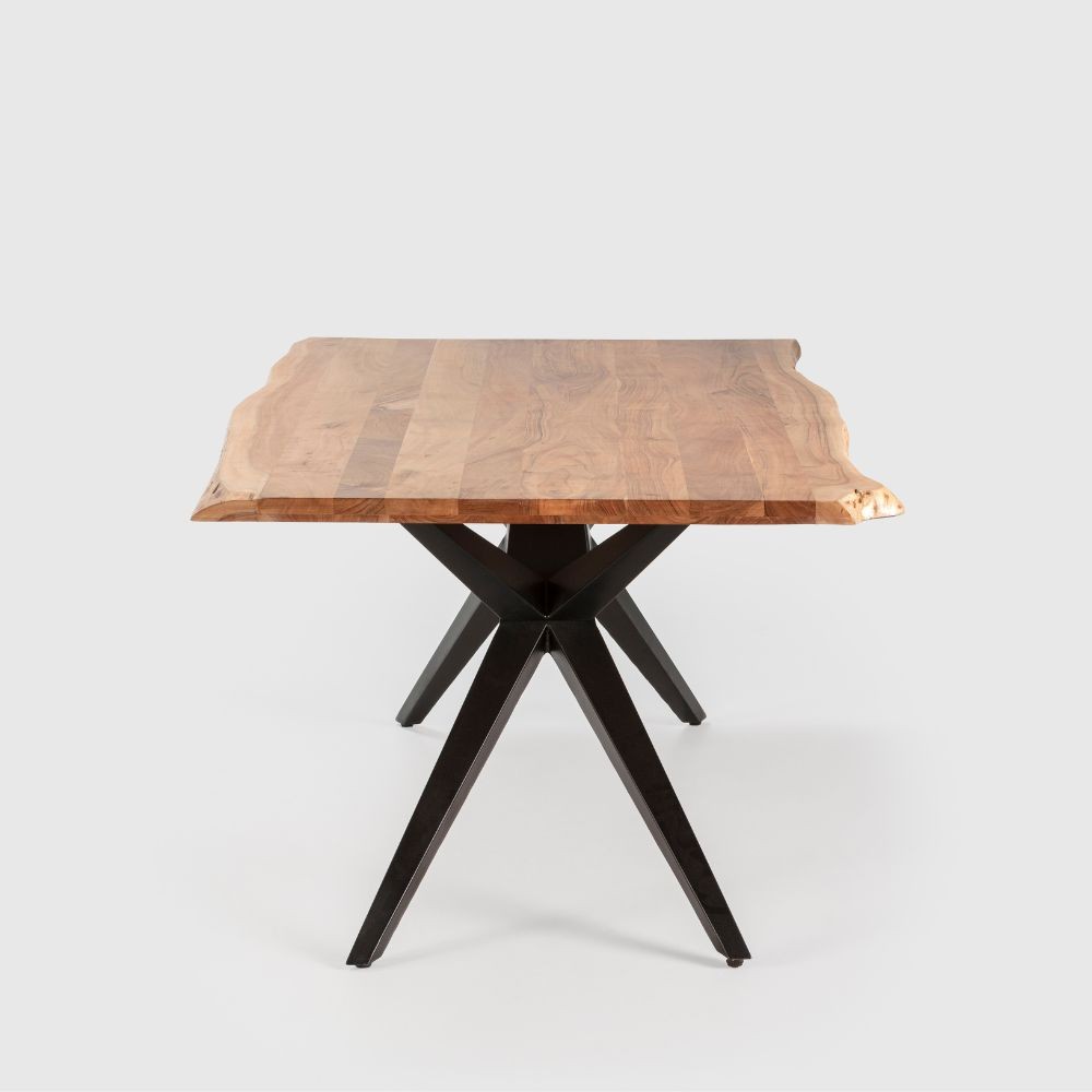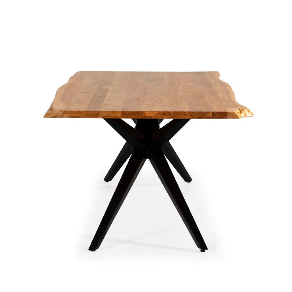 Tavolo rettangolare fisso Mudri con piano in legno massiccio acacia e gambe in metallo neroTavolo rettangolare fisso Mudri con piano in legno massiccio acacia e gambe in metallo nero