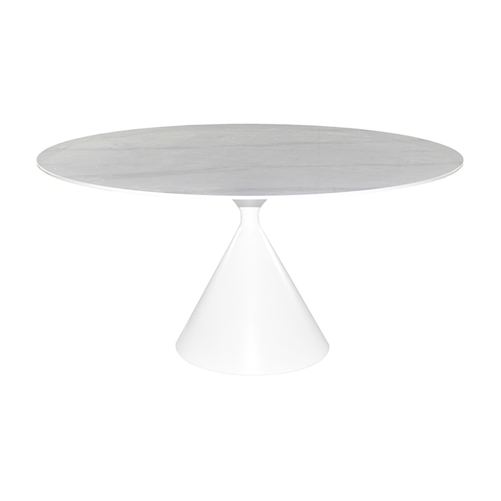 Tavolo fisso Punto con piano effetto marmo bianco D150xH76 cm.