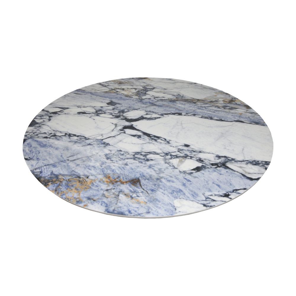 Tavolo fisso Punto con piano effetto marmo con dettagli blu D150xH76 cm.