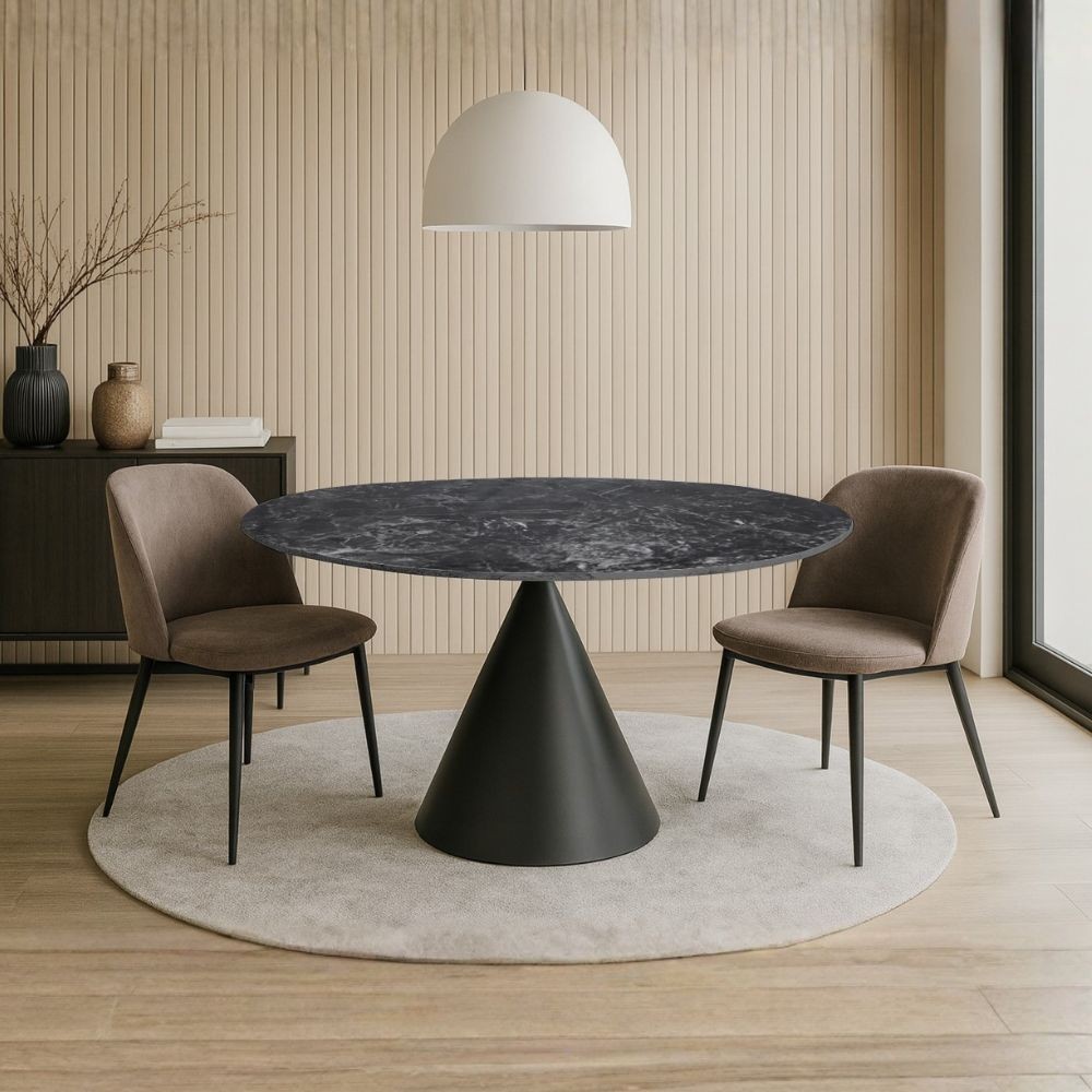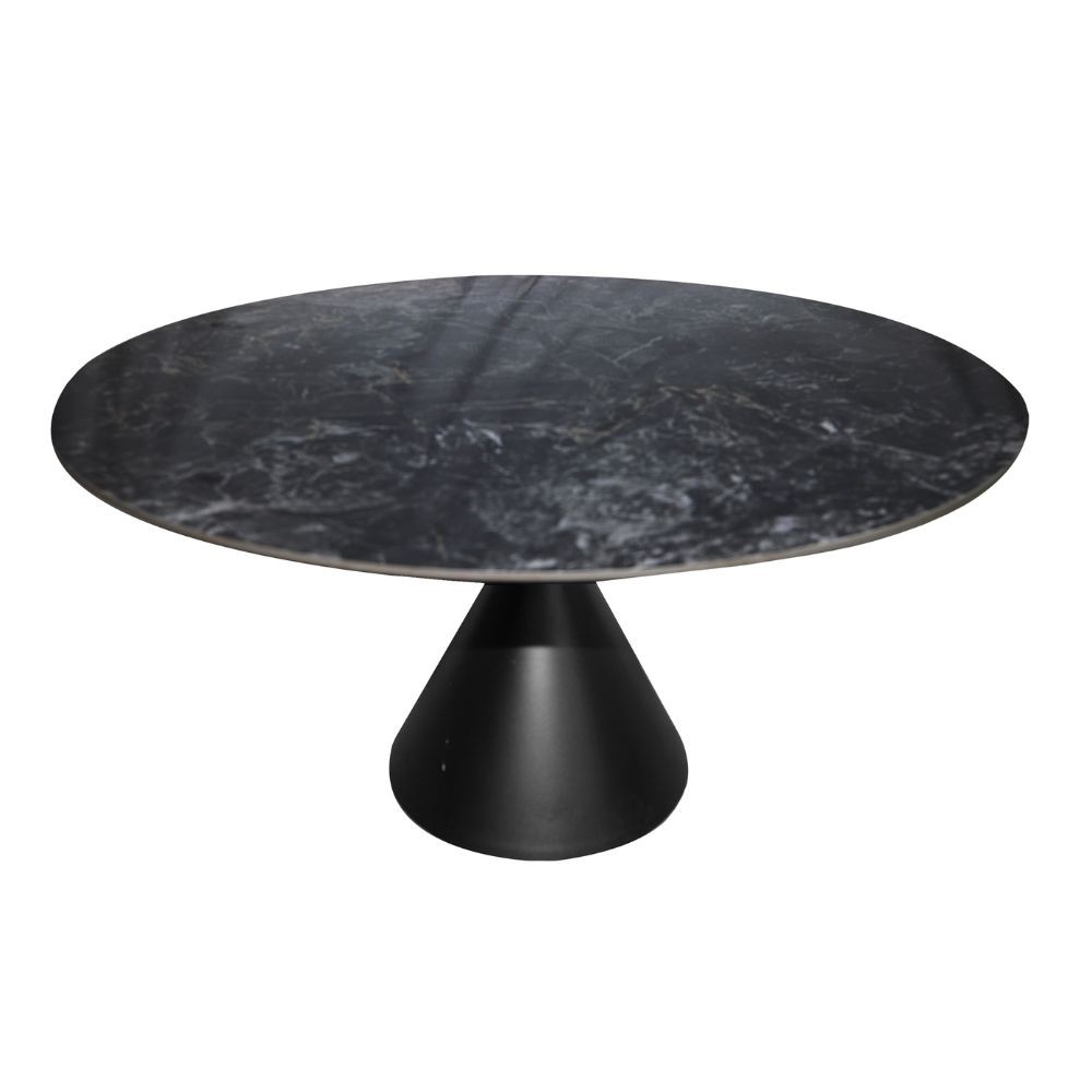 Tavolo fisso Punto con piano effetto marmo nero D150xH76 cm.Tavolo fisso Punto con piano effetto marmo nero D150xH76 cm.
