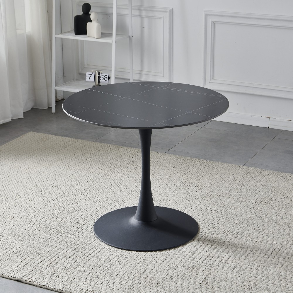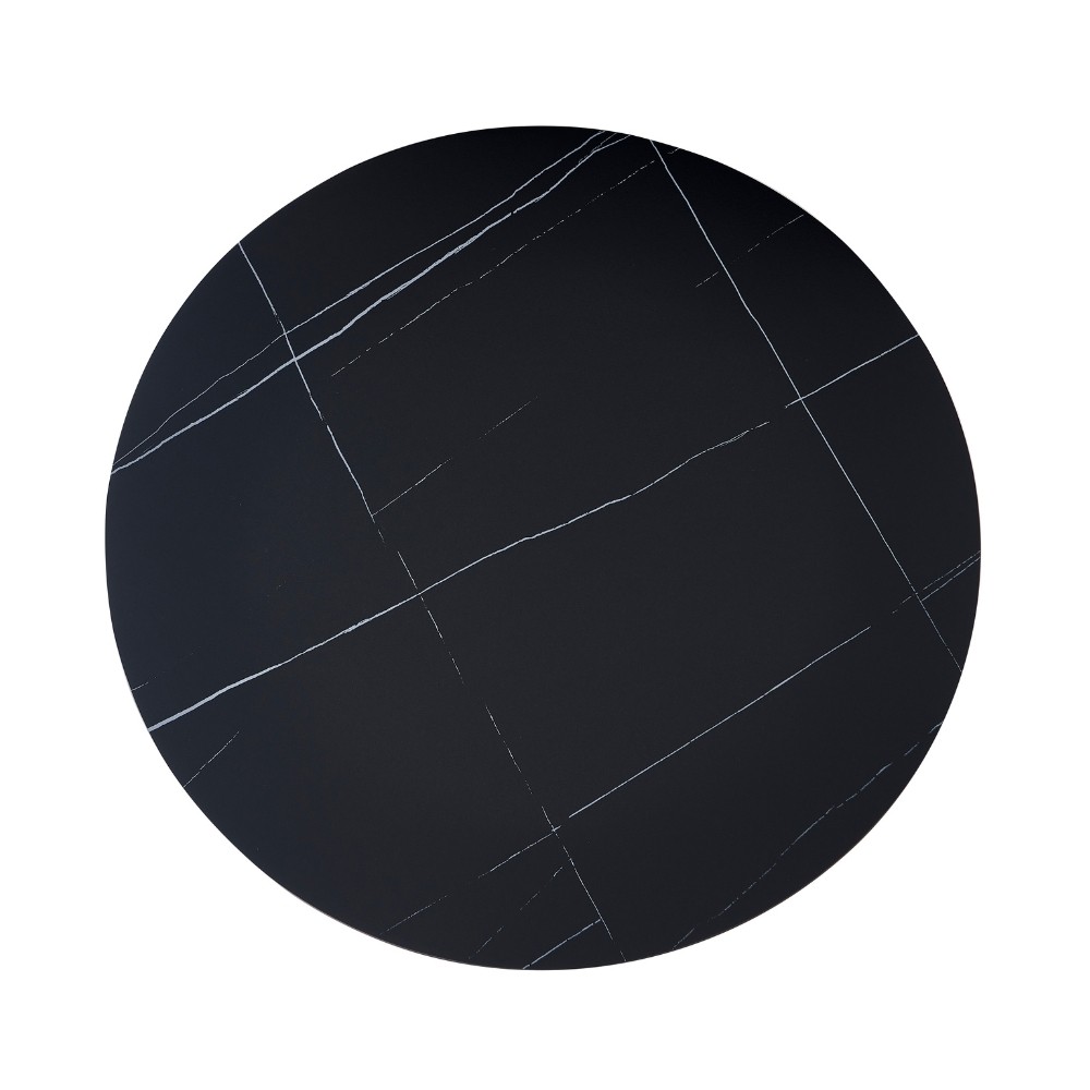 Tavolo rotondo Dot con piano in ceramica effetto marmo nero opaco con particolari oro e gamba nera