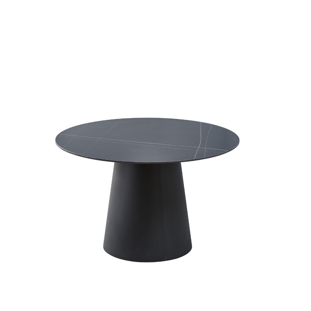 Tavolo rotondo Lauren in ceramica colore nero opaco con venature oro e gamba metallo nero