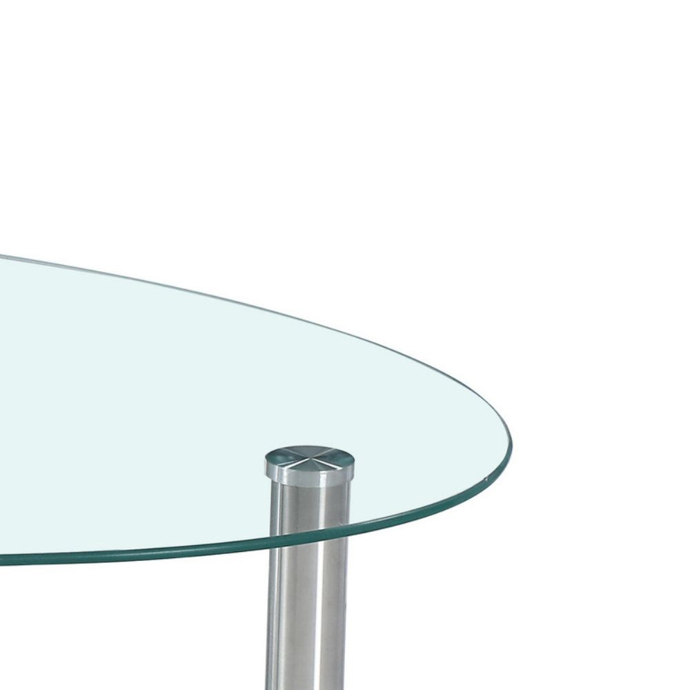 Tavolino Mimas con doppio piano in vetro temperato con gambe in acciaio