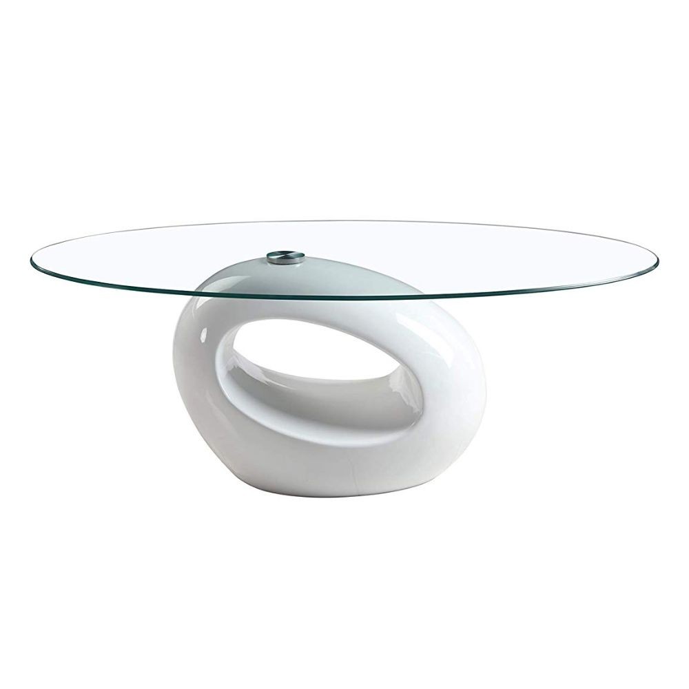 Tavolino Miranda con piano in vetro e struttura bianco lucido