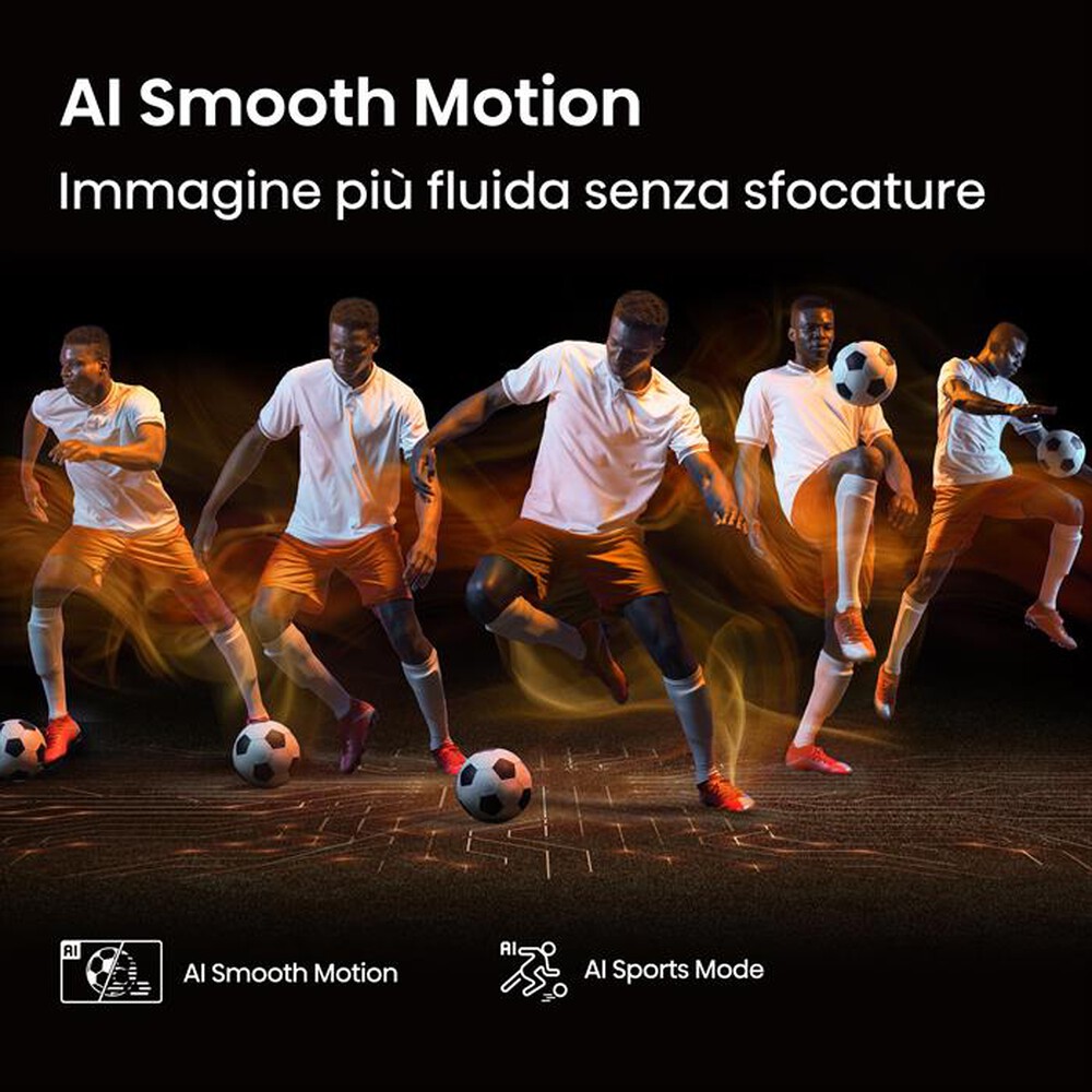 Sperimenta immagini fluide e realistiche con funzionalità avanzate come MEMC (Motion Estimation, Motion Compensation) e 3D Noise Reduction, integrate in un pannello altamente reattivo. Con la tecnologia AI Smooth Motion, il fastidioso motion blur appartiene al passato. Che si tratti di sport frenetici o di giochi ricchi di azione, ogni movimento e svolta improvvisa viene reso con nitidezza, assicurando che le scene dinamiche appaiano fluide e realistiche.